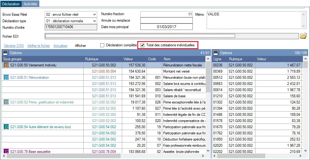 De ce fait L'écran DSN a été amélioré afin de comprendre le détail de la