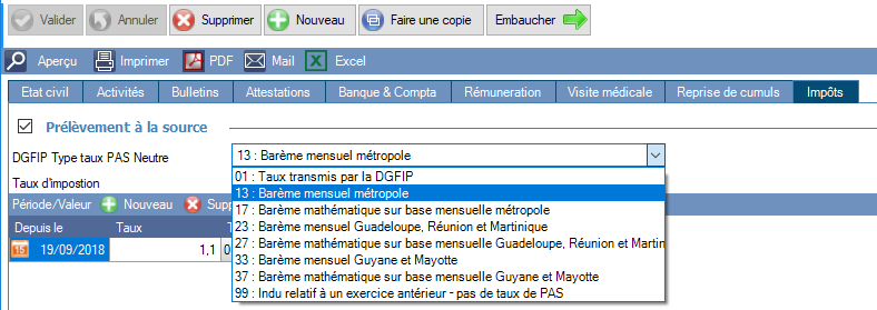 Mise à jour du barème des taux neutres de prélèvement à la source