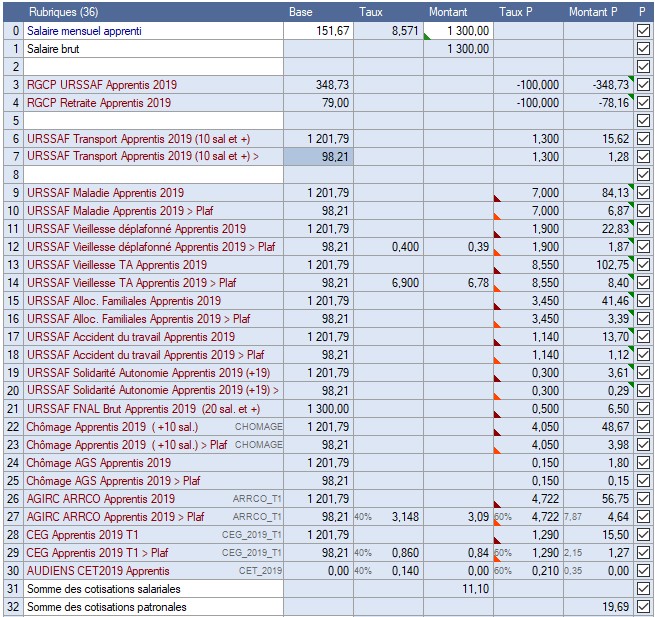 Si vous êtes une entreprise >= 11 salariés et assujettie à la taxe sur les salaires, vous devez insérer ces 3 rubriques dans les bulletins ainsi que dans les profils des apprentis.