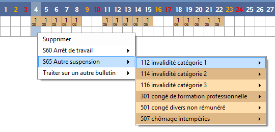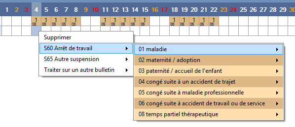 dans ce cas dans le menu contextuel sont proposés les bulletins