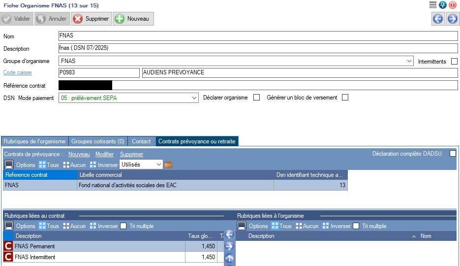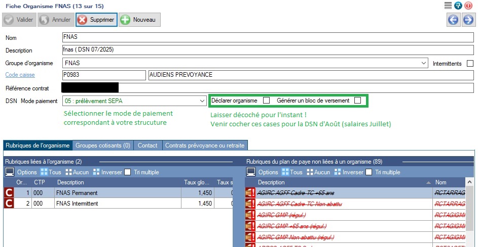 Vous devez toutefois contrôler le paramétrage de cet organisme.