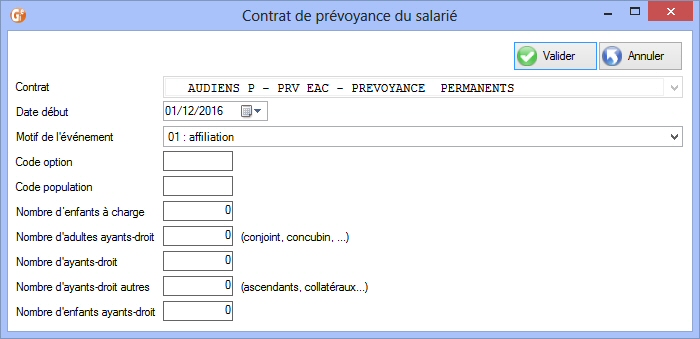 Sur la fiche évènement du contrat de prévoyance,